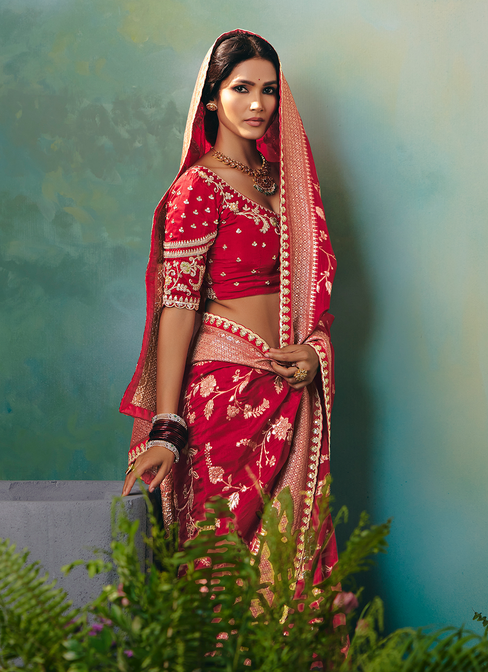Designer Bridal Red Zari Weaving Dola Viscose Silk Wedding Wear Saree | 1 | Siya Fashion