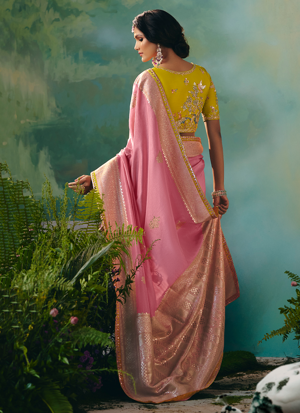 Reception Wear Pink Zari Weaving Dola Viscose Silk Saree with Designer Blouse